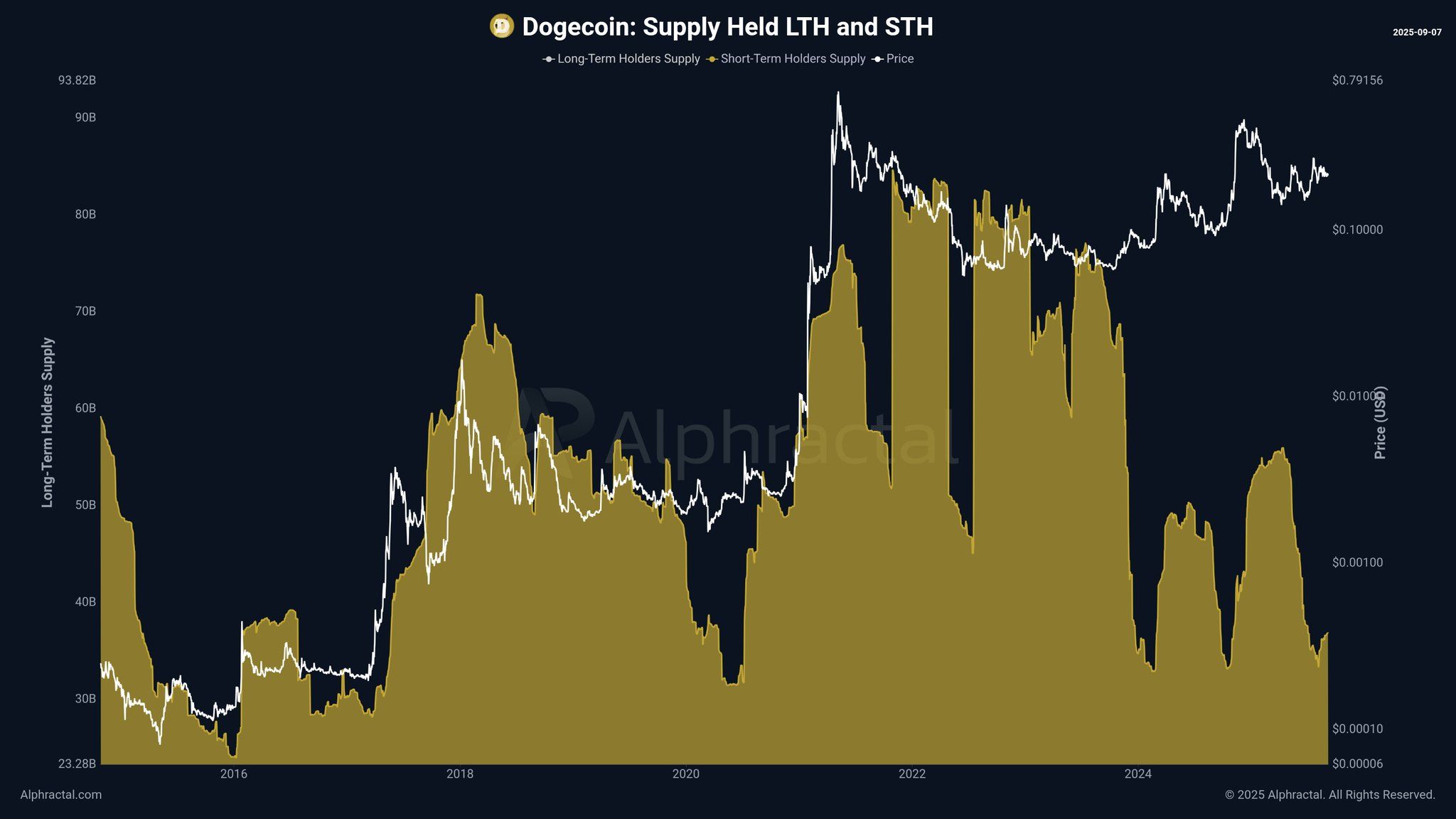 Предложение Dogecoin у краткосрочных держателей. Источник: Alphractal