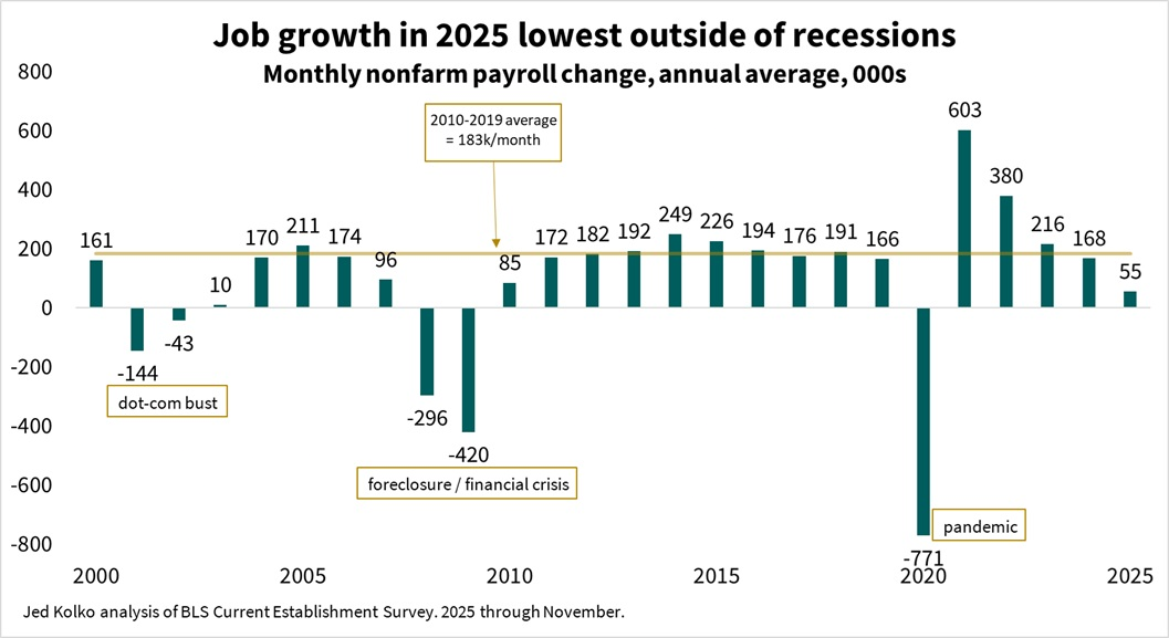 Рост числа рабочих мест в США по годам. Источник: X/Jed Kolko