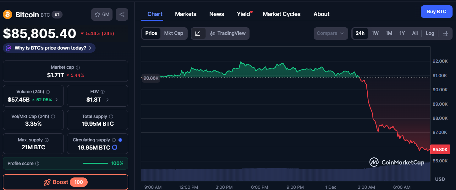 Напомним, что 21 ноября цена биткоина упала ниже $81 000.