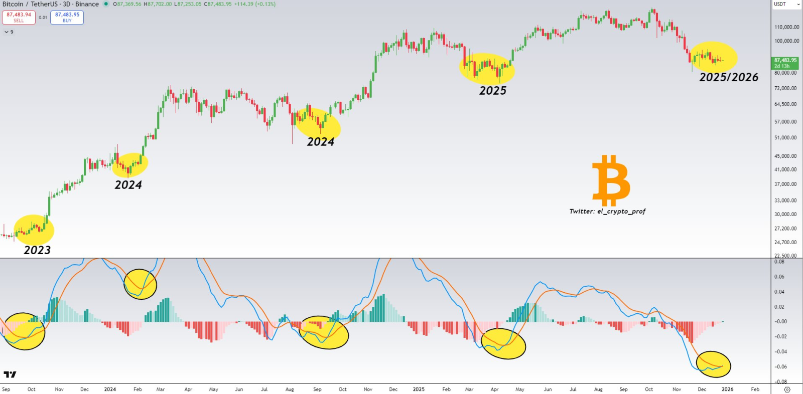 Moustache указывает, что индикатор MACD образовал бычье пересечение, что в последние четыре раза предшествовало росту не менее чем на 66%. Такой сценарий поднял бы цену биткоина до $140 000.
