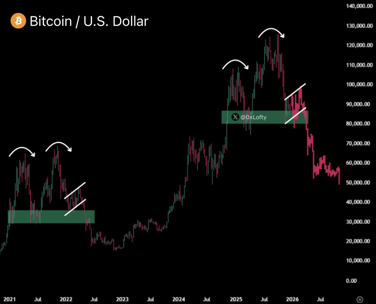 С другой стороны, некоторые эксперты ожидают продолжения бокового движения или даже резкой коррекции. Аналитик под псевдонимом Lofty опубликовал график, предсказывающий падение BTC до $45 000 уже на следующей неделе, призвав инвесторов быть готовыми к такому сценарию.