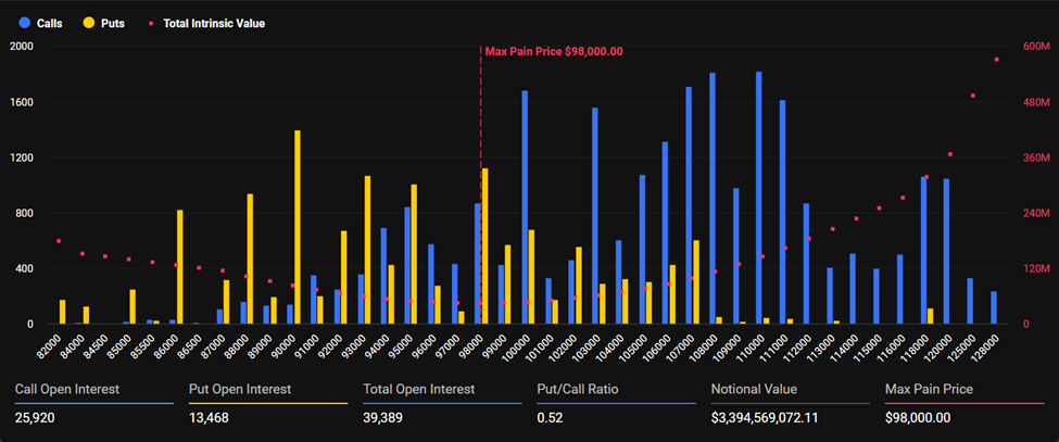 Существенный разрыв между текущей ценой и уровнем $98 000 указывает на риски для владельцев колл-опционов. Они могут понести значительные потери при закрытии контрактов.