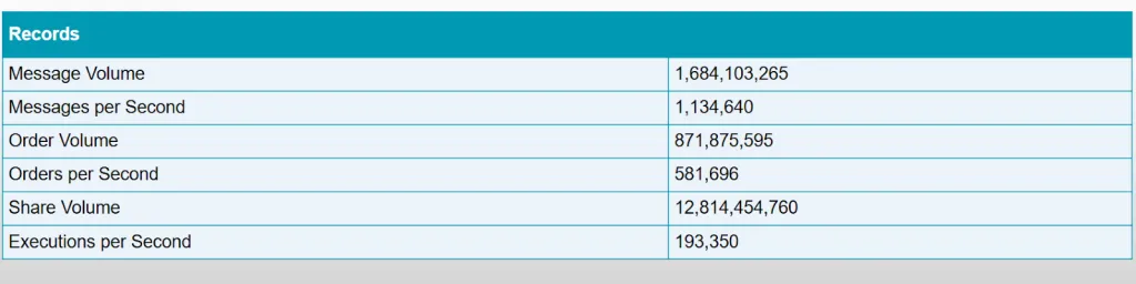 Рекорды сети Nasdaq во время пиковых нагрузок. Источник: Nasdaq.