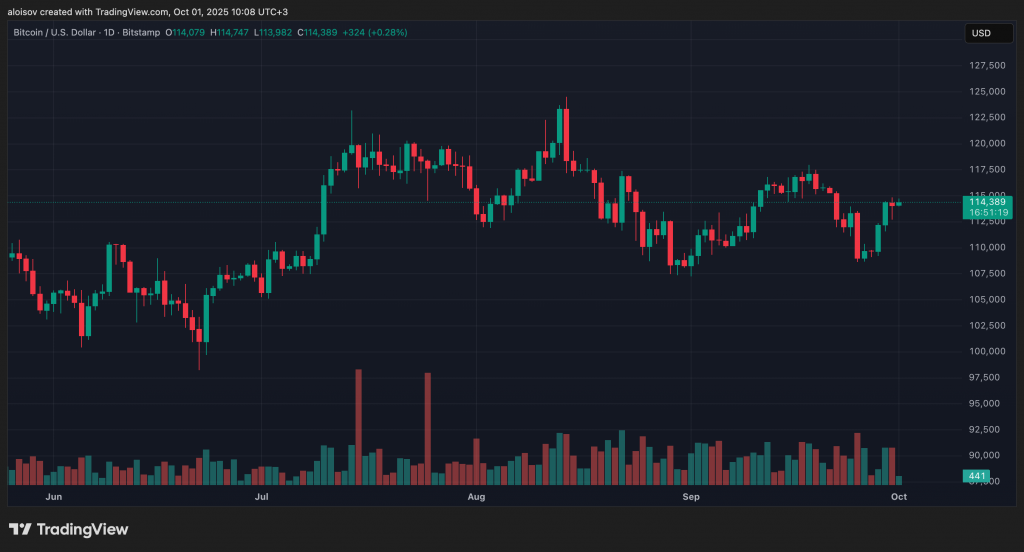 Биткоин консолидируется выше $114 000, в то время как золото продолжило обновлять исторические максимумы — и теперь трейдеры уверены, что BTC готов последовать его примеру.