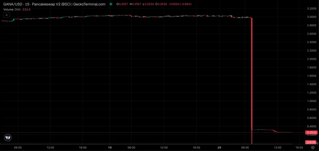 15-минутный график GANA/USD биржи PancakeSwap. Источник: GeckoTerminal.