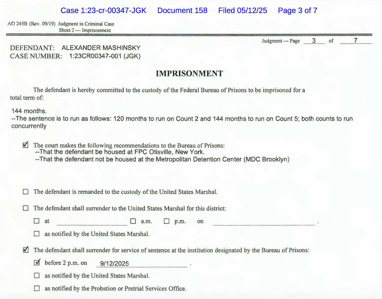 После признания вины и слушания по вынесению приговора бывший генеральный директор Celsius Алекс Машинский должен явиться в федеральную тюрьму для отбывания срока. Согласно документам, поданным 12 мая, через несколько дней после слушания по делу Машинского в Окружном суде США по Южному округу Нью-Йорка, ожидается, что Машинский сам сдастся властям до 14:00 по восточному времени в пятницу.