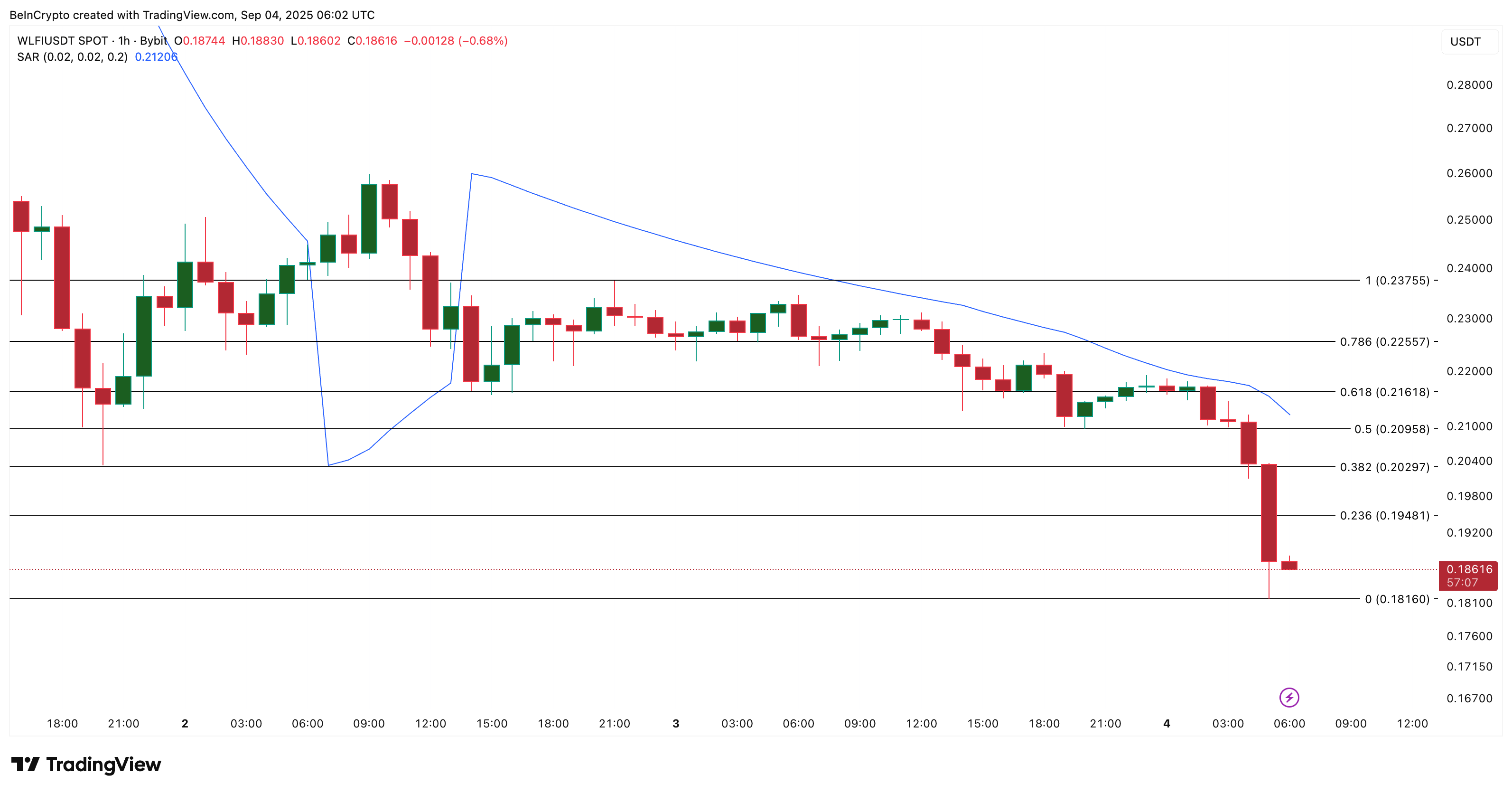World Liberty Financial (WLFI) переживает серьезное падение. Цена актива, торгующегося по $0,187, снизилась почти на 20% за последние сутки — это резкое изменение для монеты, запущенной всего несколько дней назад