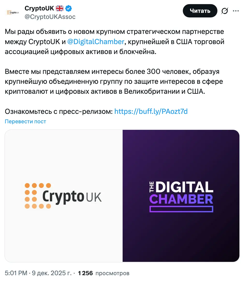 Британская торговая ассоциация CryptoUK сообщила, что присоединится к американской группе Digital Chamber, занимающейся продвижением криптополитики. Это может стать важным примером трансграничного сотрудничества двух стран в области регулирования цифровых активов.
