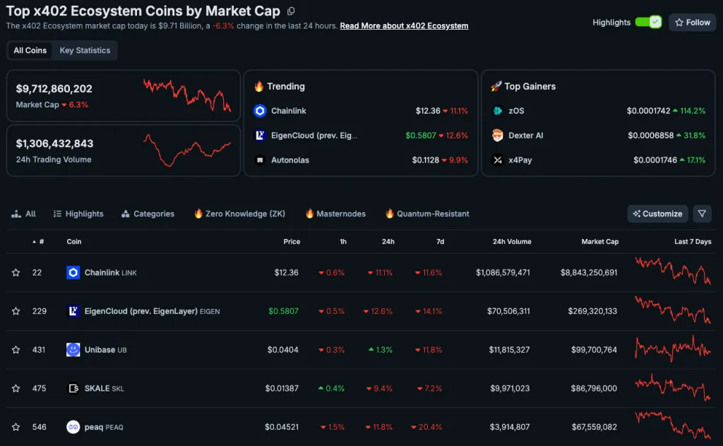 Разработчики стали активно использовать протокол для выпуска мем-коинов. Агрегатор данных CoinGecko добавил категорию для созданных на базе x402 монет.