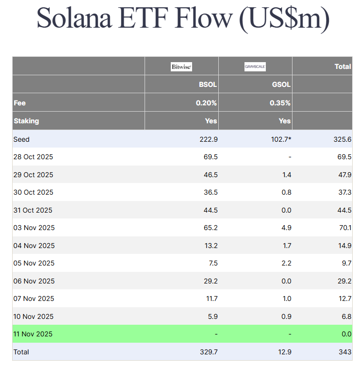 Потоки средств Solana-ETF, USD, миллионы. Источник: Farside Investors