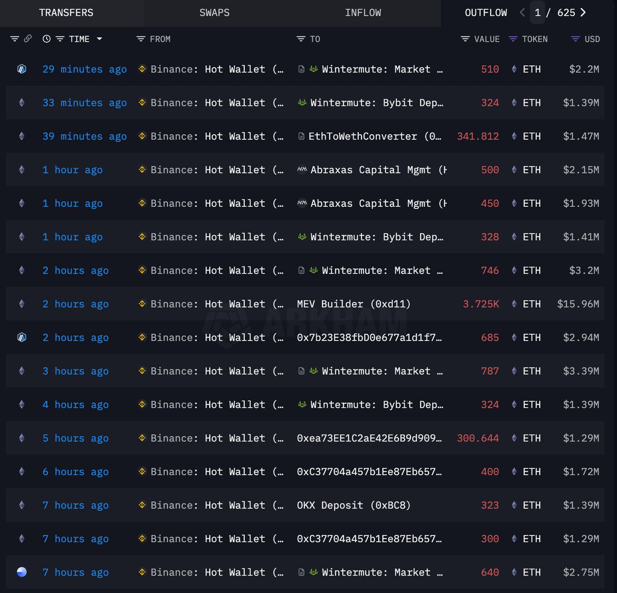 Популярный криптоблогер под ником Wimar.X считает, что криптобиржи намерено оказывают давление на ETH. В своем X он опубликовал скрины, на которых зафиксирована распродажа криптовалюты крупными биржами. Блогер уличил в таких операциях Binance, Coinbase, Bybit и Upbi.