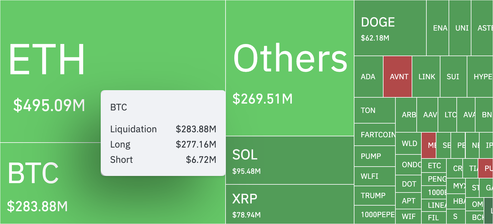 Резкое падение биткоина (BTC) привело к ликвидации на $277 млн