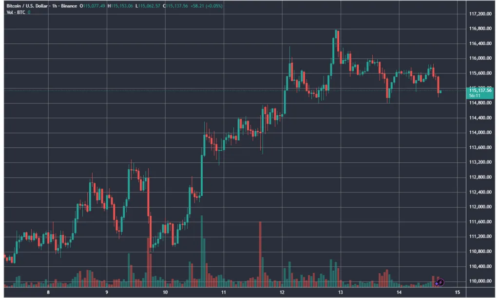Первая криптовалюта продолжила восходящий тренд. К концу рабочей недели котировки превысили $116 500. Цифровое золото не удержалось на достигнутых отметках и на выходных скорректировалось к ~$115 500.