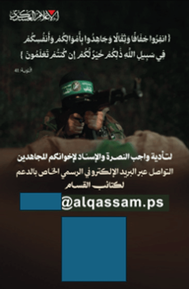 В одном из расследований выяснилось, что киберподразделение ХАМАСа, известное как «Теневая группа», через Telegram просило людей делать пожертвования для военного крыла организации — Бригад Аль-Кассам. В одном посте прямо указывались адреса криптокошельков, во втором — предлагалось писать на email, чтобы узнать детали.