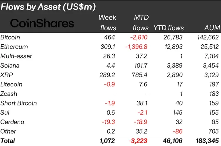Криптофонды привлекли $1,07 млрд после месяца оттоков