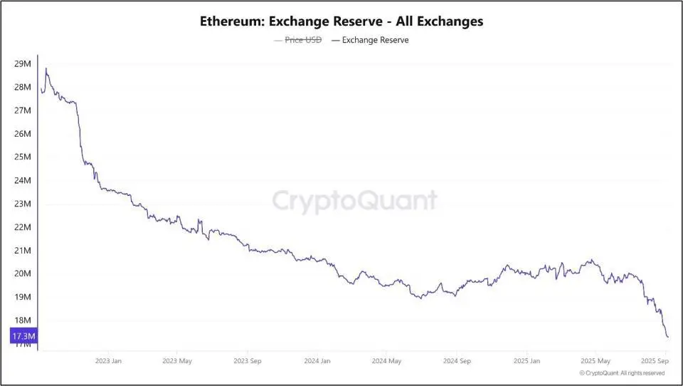 Важно: хотя торговый объем эфира растет, его запасы на криптовалютных биржах падают. По информации аналитической платформы CryptoQuant, сейчас резервы торговых платформ = чуть больше 17,3 млн ETH. С начала года с криптобирж было выведено около 2,7 млн коинов. Показатель резерва эфира на торговых площадках достиг своего минимума за три года. Такое положение дел обычно свидетельствует о том, что инвесторы предпочитают копить ETH, а не торговать им. Как правило, такой сигнал предвещает дальнейший рост стоимости.