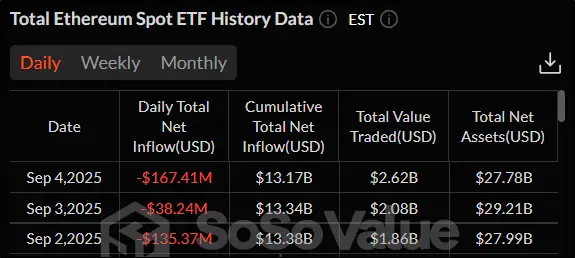 А вот для спотовых ETF на эфир осень началась с недельного оттока денежных средств в $341,02 млн. На протяжении всех трех торговых сессий инвесторы изымали свои активы из биржевых фондов на эфир.
