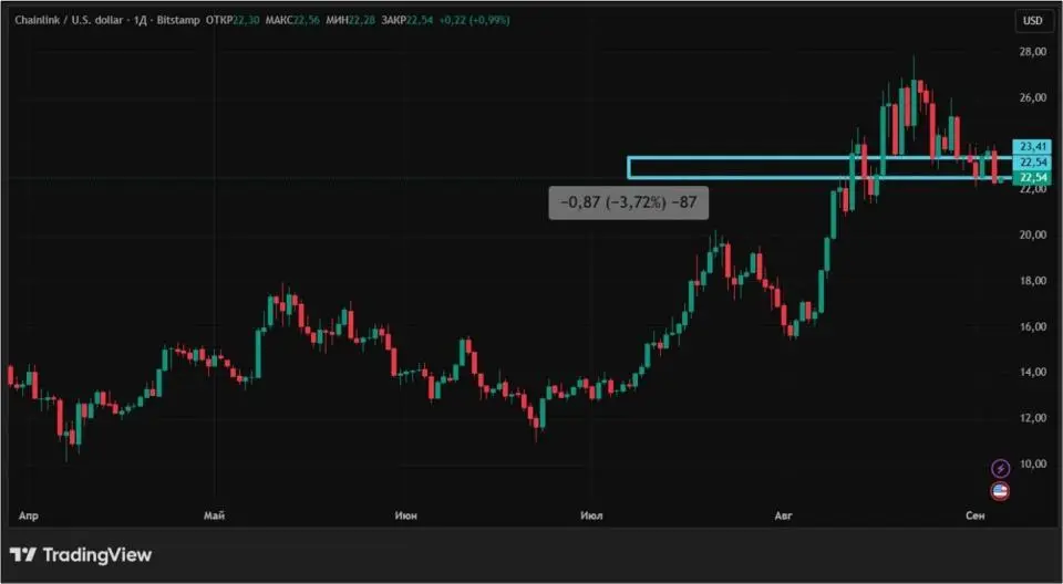 Chainlink за неделю с 29 августа по 5 сентября снизилась на 3,72%. После того, как эта криптовалюта 22 августа показала максимум года, ее стоимость падает вот уже вторую неделю подряд. Наибольшие распродажи наблюдались в четверг, 4 сентября, когда LINK снизился на 5,82%.