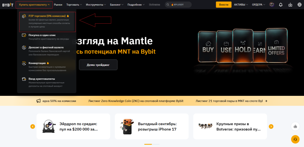 Самый сбалансированный способ — покупка криптовалюты через P2P на Bybit. Биржа обеспечивает ликвидность и безопасность через эскроу и нулевую комиссию.
