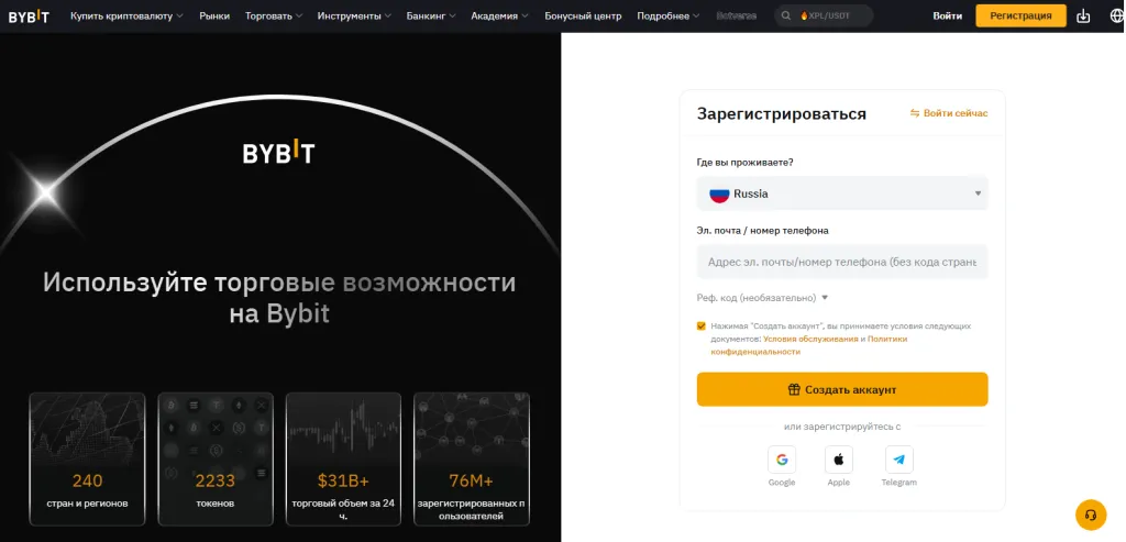 Шаг 1.Зарегистрируйтесь на Bybit через сайт или мобильное приложение.