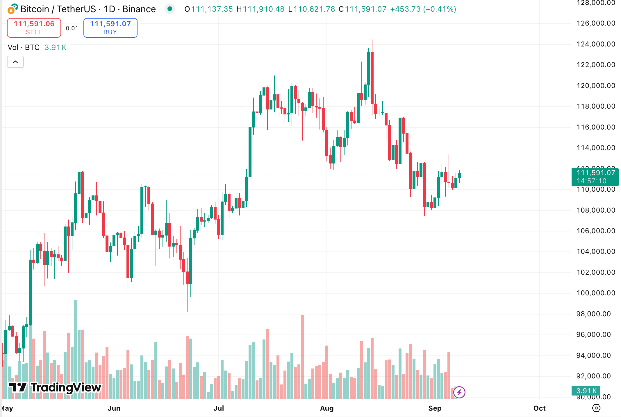 Дневной график BТС/USDT на бирже Binance. Источник: TradingView.