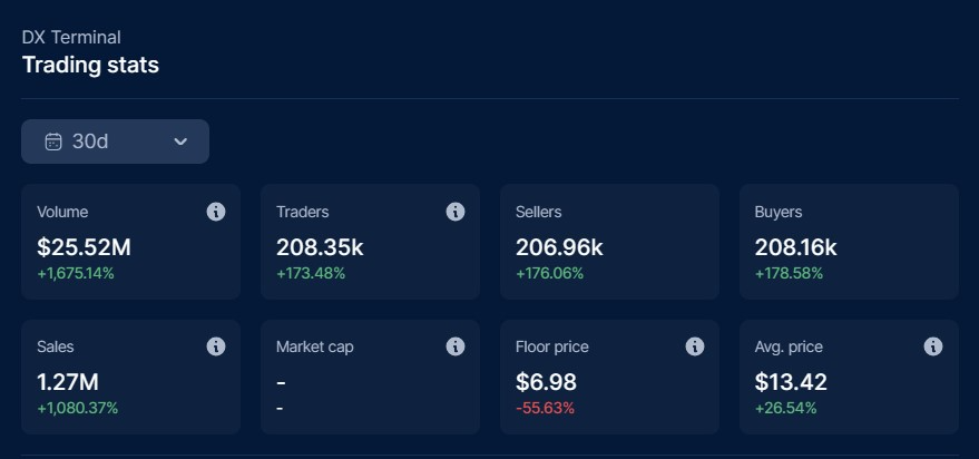 Статистика торговли DX Terminal. Источник: DappRadar.
