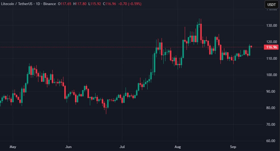 Отметим, на момент написания LTC торгуется около $117: