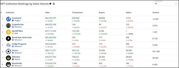 Зато у Polygon есть повод для гордости — их коллекция NFT Courtyard стала лучшей в августе 2025 года. Всего было осуществлено продаж на сумму свыше $62,5 млн. Еще более впечатляющие результаты Courtyard показала в последнюю неделю августа. По объему продаж она превзошла коллекции CryptoPunks, DMarket и Pudgy Penguins, занимающие места со второго по четвертое.