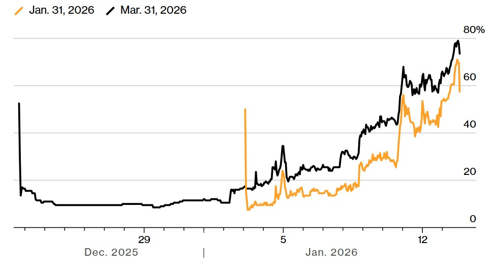 Ставки на вероятность обострения конфликта между США и Ираном. Источник: Polymarket.
