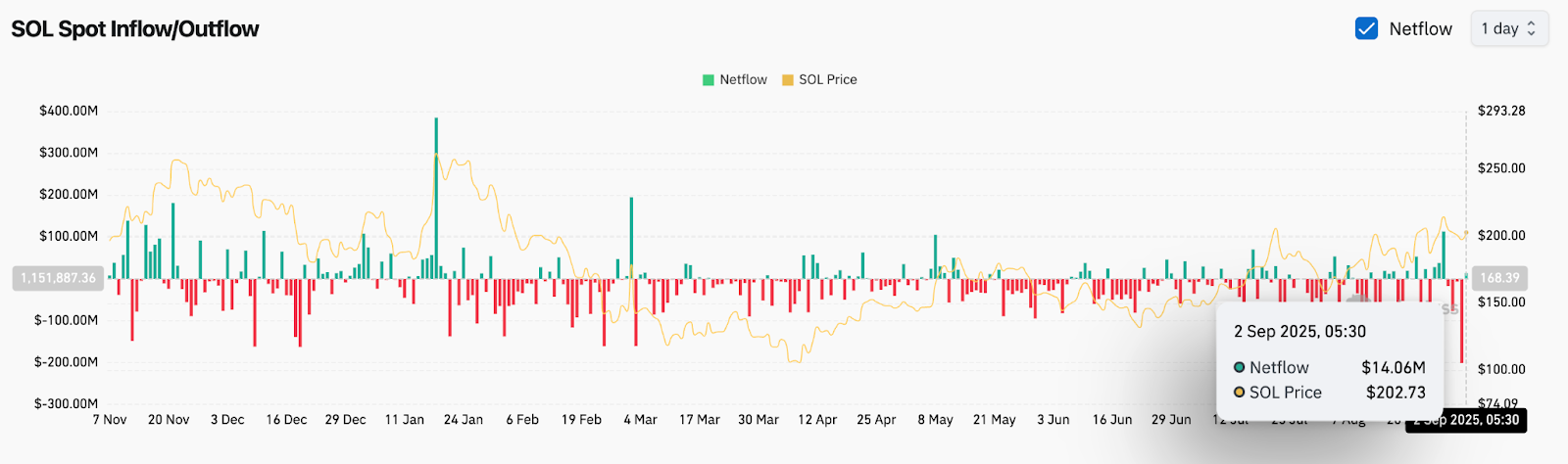 Сегодня цена Solana колеблется около $202, продолжая уверенный рост после тестирования уровня поддержки $195 ранее на этой неделе. Восстановление произошло на фоне роста притока спотовых инвестиций и возобновившегося оптимизма относительно потенциального золотого креста в паре SOL/BTC, технической модели, которая ранее спровоцировала значительные ралли.