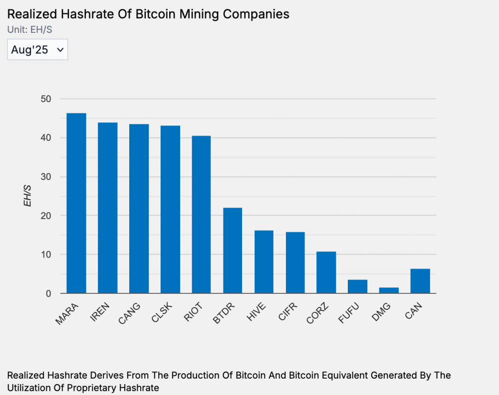 Bitdeer, хотя и не опубликовала свои ежемесячные результаты, в еженедельных отчетах сообщила, что за четыре недели августа добыла 335 BTC, что означает реализованный хешрейт около 22 EH/s. Этот показатель представляет собой рост почти на 25% по сравнению с июлем и не включает оставшиеся дни месяца.