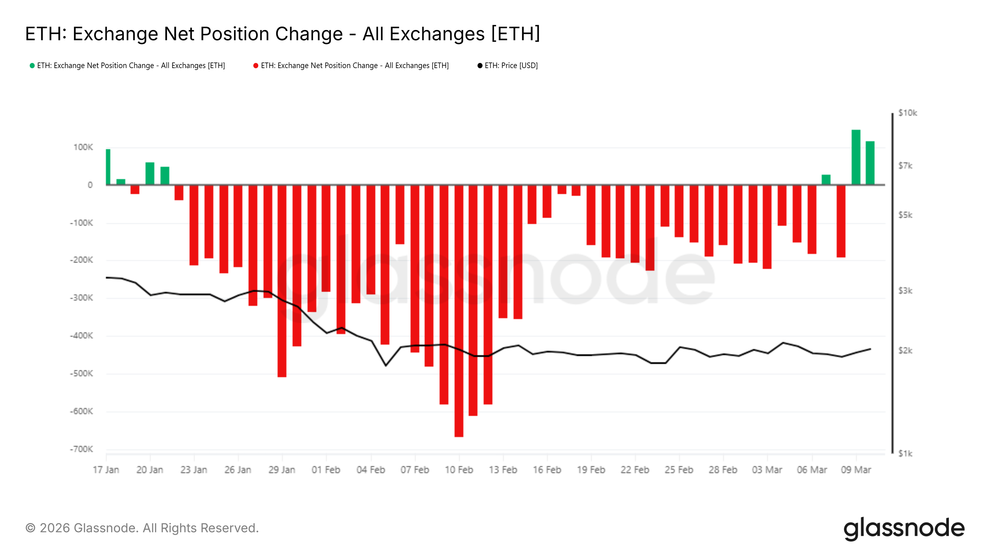 Динамика чистой позиции эфириума на биржах. Источник: Glassnode