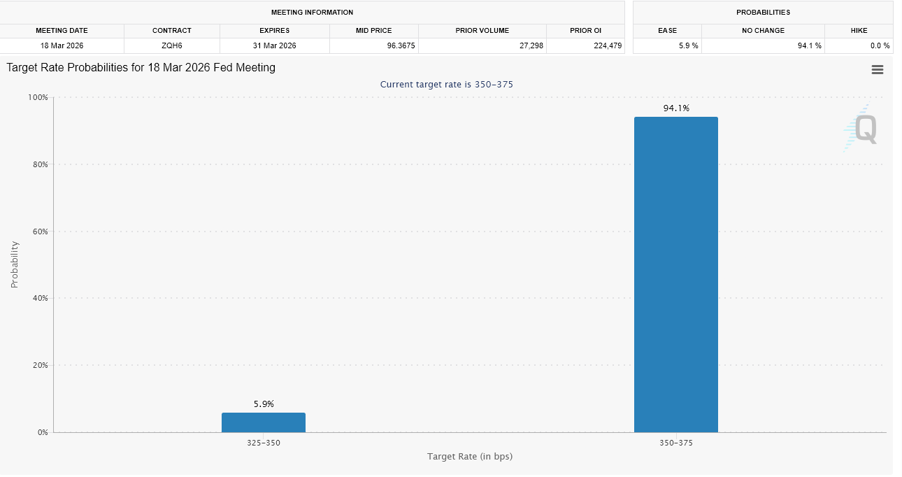 Вероятность снижения ставки ФРС в марте 2026 года. Источник: CME FedWatch