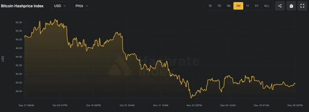 Стабилизация технических параметров блокчейна означает, что хешпрайс останется на уровне вблизи $38 за PH/s в сутки, продолжая оказывать давление на экономику добычи.