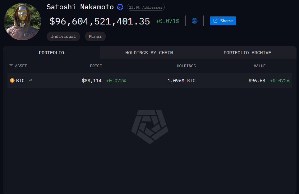 Кошелек Сатоши Накамото. Источник: Arkham.