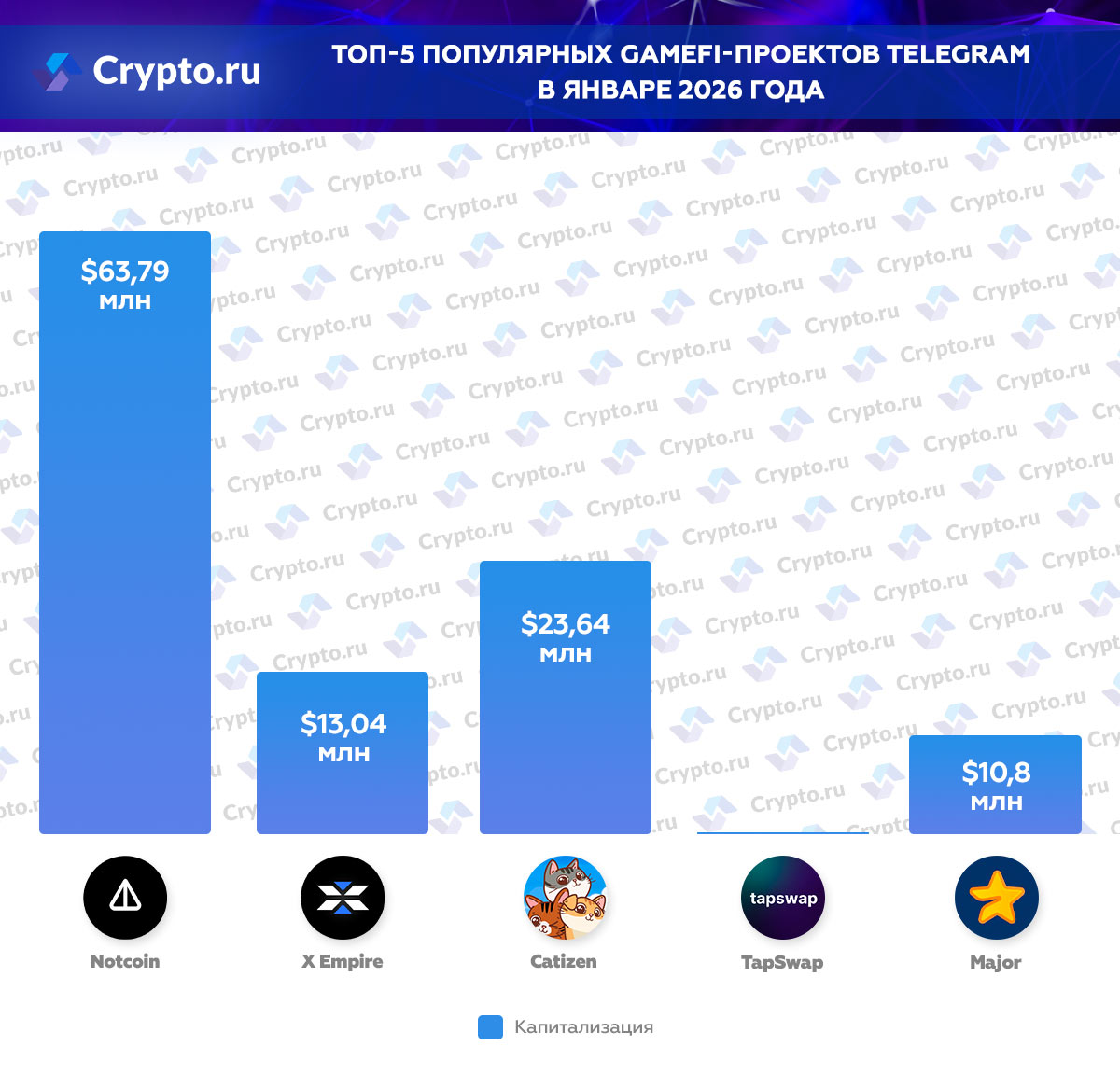 В первую очередь стоит отметить Notcoin (NOT). Он уже давно стал знаковым проектом. В 2026 году криптовалюта продолжит активно развиваться. С момента запуска количество вознаграждений сократилось, но монета — узнаваемый бренд с широким охватом целевой аудитории.
