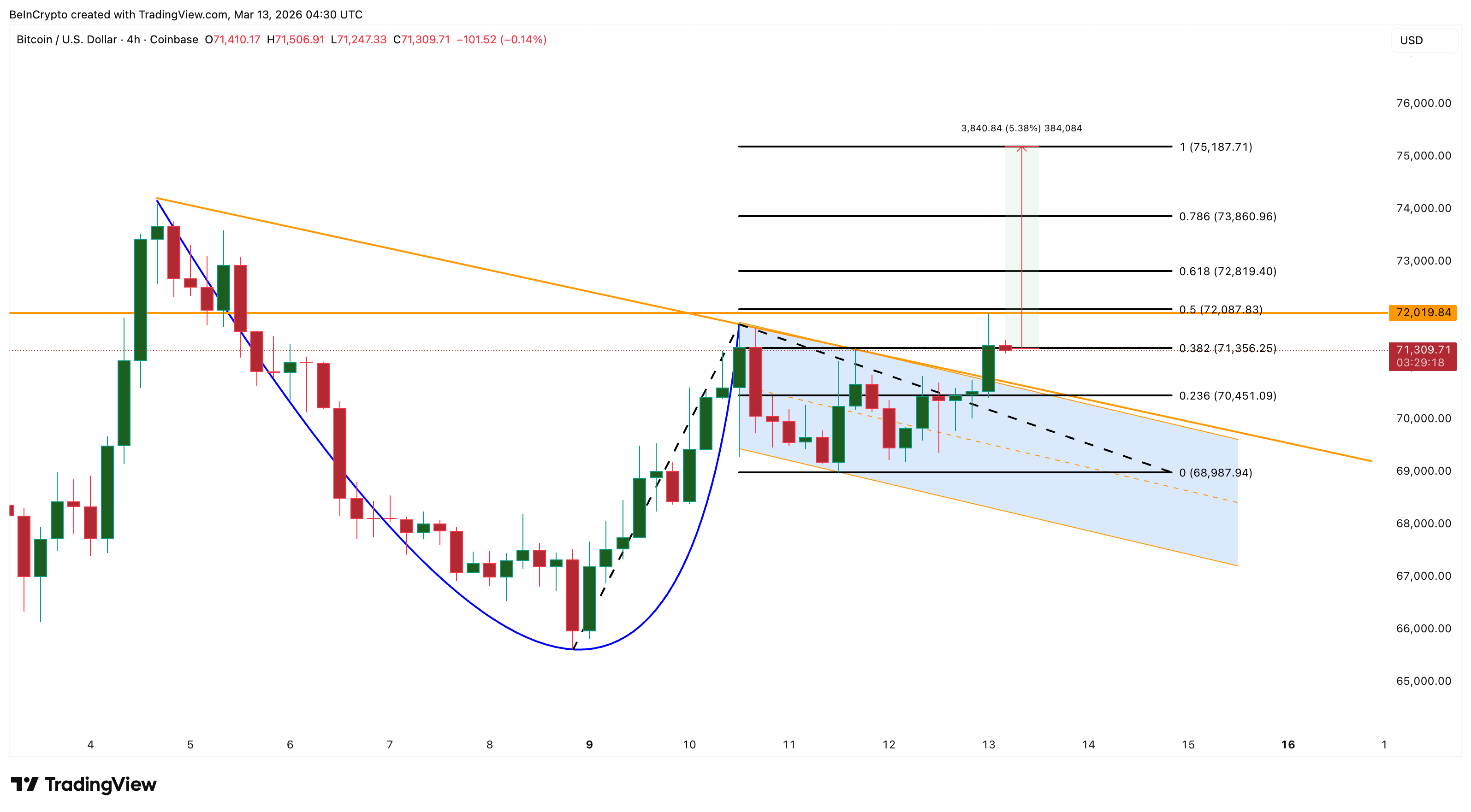 Если биткоин сможет восстановиться над $72 000, расхождение на RSI, скорее всего, ослабнет, а структура пробоя снова получит импульс.