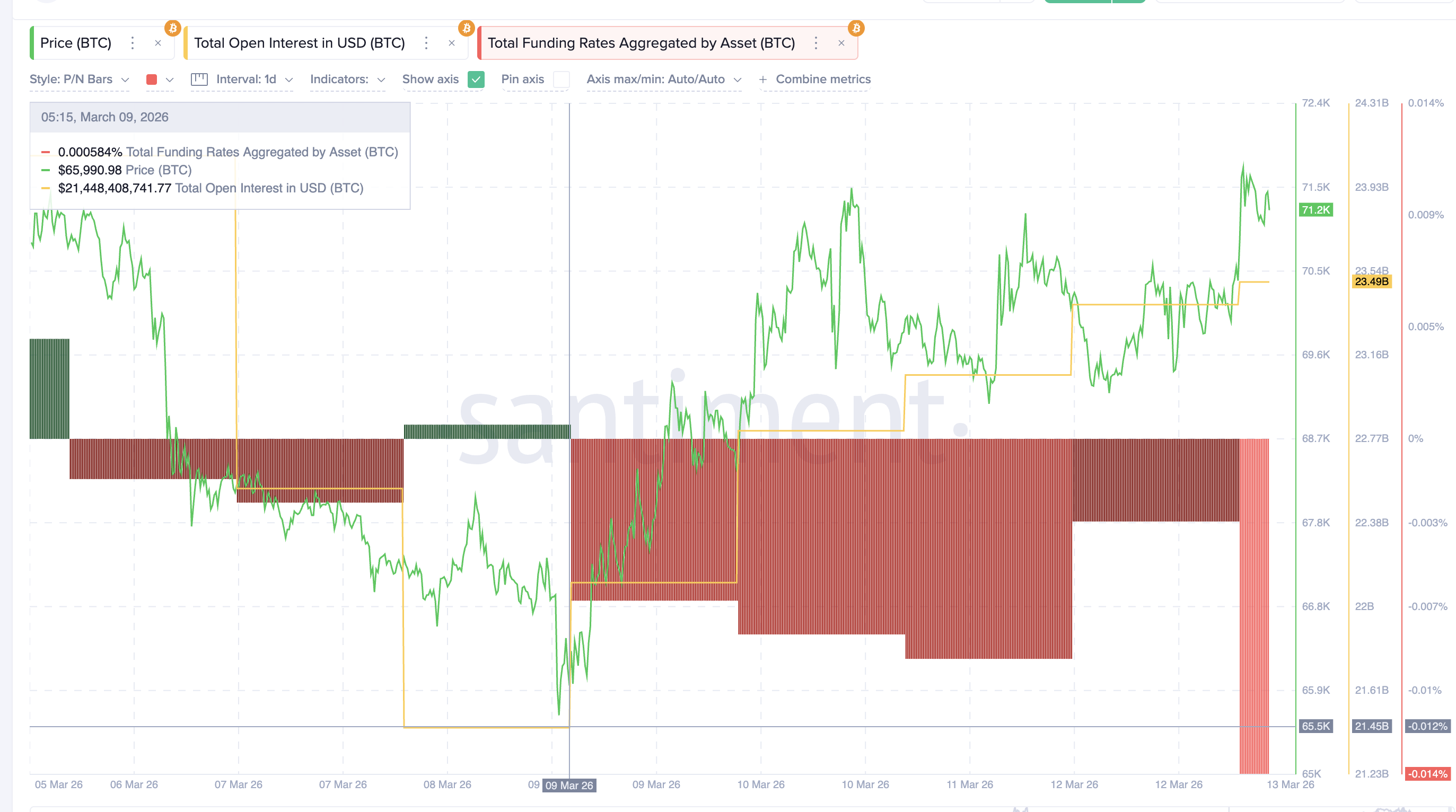 Отрицательный фандинг говорит о доминировании коротких позиций – значит, многие участники все еще делают ставку на снижение, несмотря на пробой вверх.
